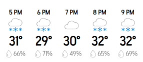 For more information, see: https://www.accuweather.com/en/us/freeport/04032/hourly-weather-forecast/333527